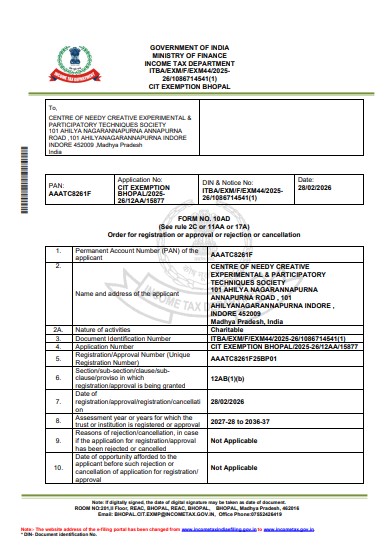 "Registered under 80G of IT and FCRA"